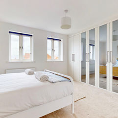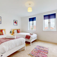 Blue Buzzard Property presents this stunning new-build townhouse overlooks the park on a peaceful no-through road. The property provides high quality living space across 4 bedrooms and 2 bathrooms with superfast wifi throughout. Parking here is easy with off-street parking for 2 vehicles- one space in a purpose-built car shelter and the other behind it. Arranged on 3 floors, the house has a fully equipped kitchen, comfortable living space and a separate study.