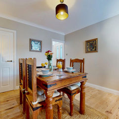 Our fully equipped kitchen is designed for longer stays, with everything you need to cook and feel at home. Enjoy a modern electric hob, oven, microwave, kettle, toaster, dishwasher, large fridge with a separate freezer in the dining room, and a full range of cooking utensils and crockery. There’s also a washing machine, ironing facilities, and cleaning supplies so you can settle in straight away. The dining area seats up to 4 guests comfortably, making it perfect for family meals or team dinners.